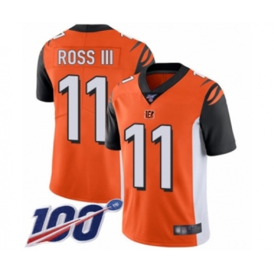 >Men's Cincinnati Bengals #11 John Ross Orange Alternate Vapor Untouchable Limited Player 100th Season Football Jersey