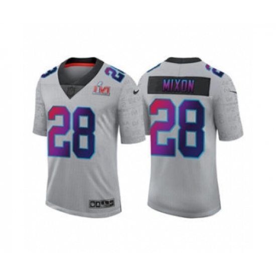 >Men's Cincinnati Bengals #28 Joe Mixon 2022 Gray Super Bowl LVI Limited Stitched Jersey