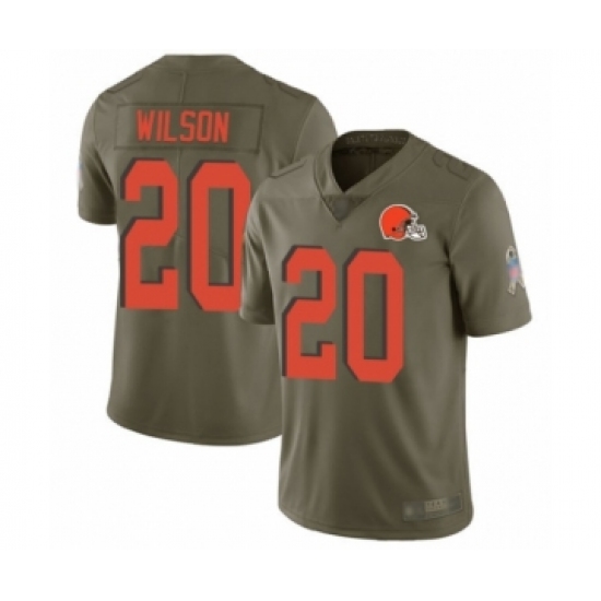 >Men's Cleveland Browns #20 Howard Wilson Limited Olive 2017 Salute to Service Football Jersey