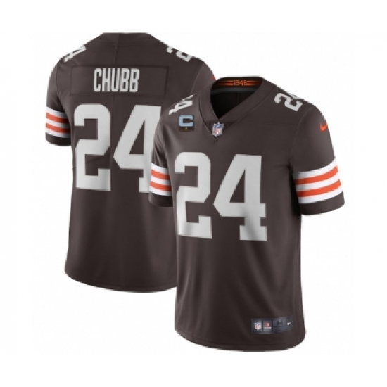 >Men's Cleveland Browns 2022 #24 Nick Chubb Brown With 1-star C Patch Vapor Untouchable Limited NFL Stitched Jersey