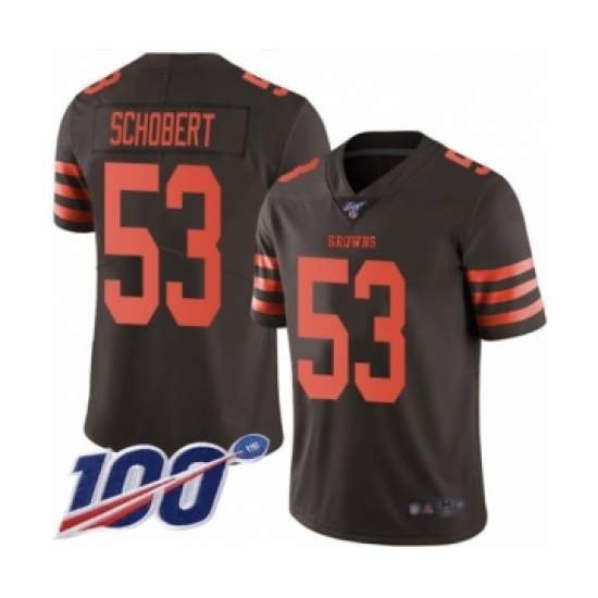 >Men's Cleveland Browns #53 Joe Schobert Limited Brown Rush Vapor Untouchable 100th Season Football Jersey