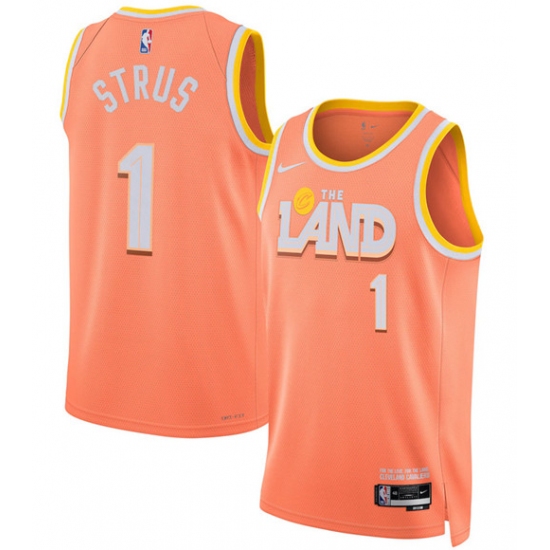 >Men's Cleveland Cavaliers #1 Max Strus Orange 2025-26 City Edition Swingman Stitched Jersey