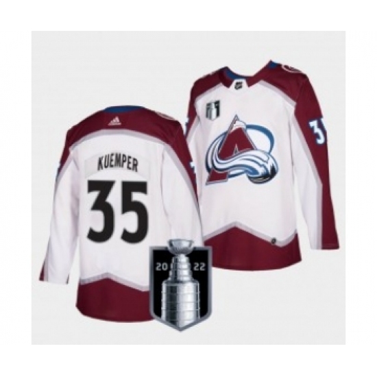Men's Colorado Avalanche #35 Darcy Kuemper White 2022 Stanley Cup Final Patch Adidas Stitched NHL Jersey