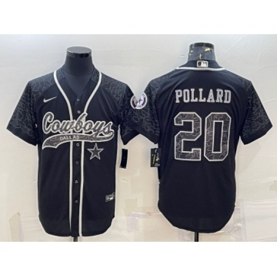 Men's Dallas Cowboys #20 Tony Pollard Black Reflective With Patch Cool Base Stitched Baseball Jersey