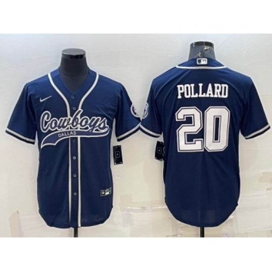 Men's Dallas Cowboys #20 Tony Pollard Navy With Patch Cool Base Stitched Baseball Jersey