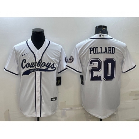 Men's Dallas Cowboys #20 Tony Pollard White With Patch Cool Base Stitched Baseball Jersey