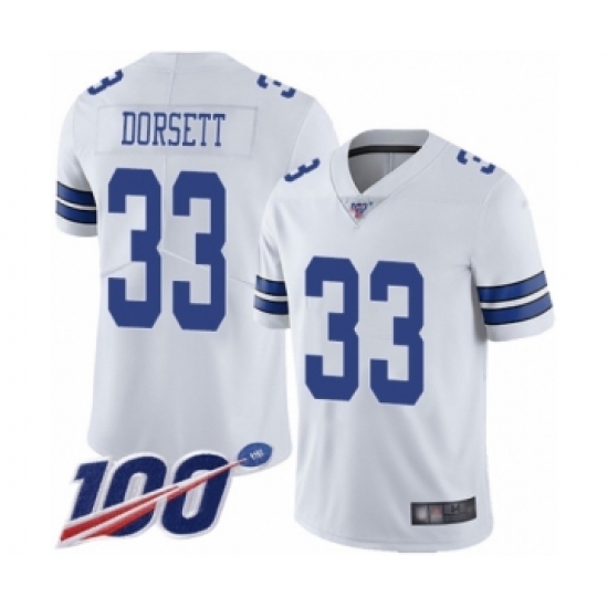 >Men's Dallas Cowboys #33 Tony Dorsett White Vapor Untouchable Limited Player 100th Season Football Jersey