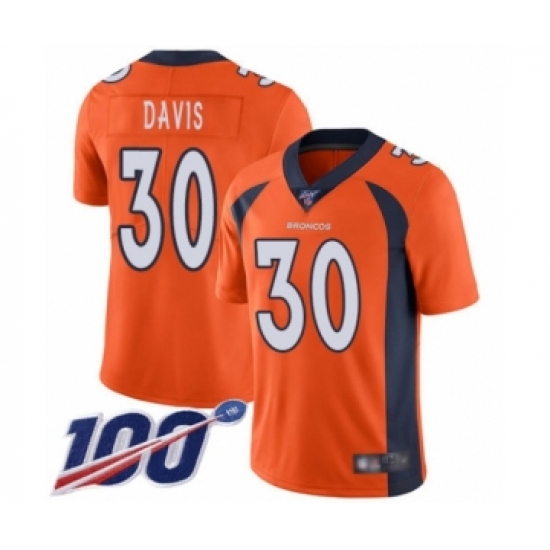 Men's Denver Broncos #30 Terrell Davis Orange Team Color Vapor Untouchable Limited Player 100th Season Football Jersey