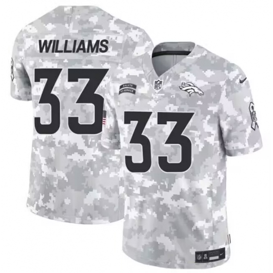 >Men's Denver Broncos #33 Javonte Williams 2024 F.U.S.E Arctic Camo Salute To Service Limited Stitched Football Jersey