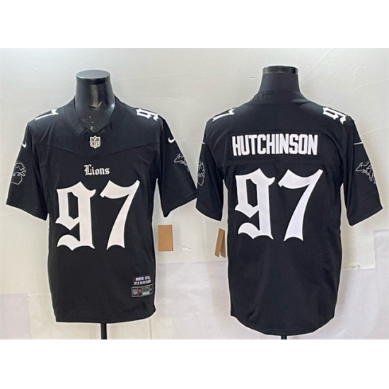 >Men's Detroit Lions #97 Aidan Hutchinson Black 2025 F.U.S.E. 'Gothic Motor Grit Edition' Vapor Limited Stitched Football Jersey