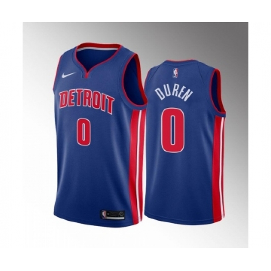 Men's Detroit Pistons #0 Jalen Duren 2022 Draft Blue Basketball Stitched Jersey