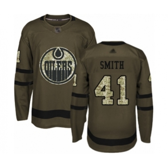 >Men's Edmonton Oilers #41 Mike Smith Authentic Green Salute to Service Hockey Jersey