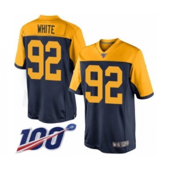 Men's Green Bay Packers #92 Reggie White Limited Navy Blue Alternate 100th Season Football Jersey