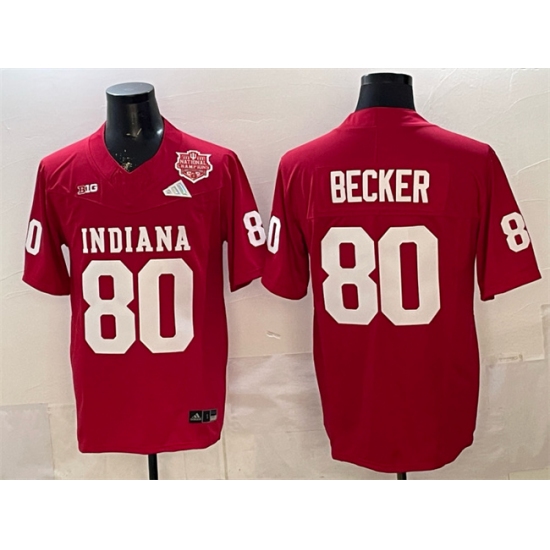 >Men's Indiana Hoosiers #80 Charlie Becker Red F.U.S.E. 2025 National Champions Patch Stitched Football Jersey