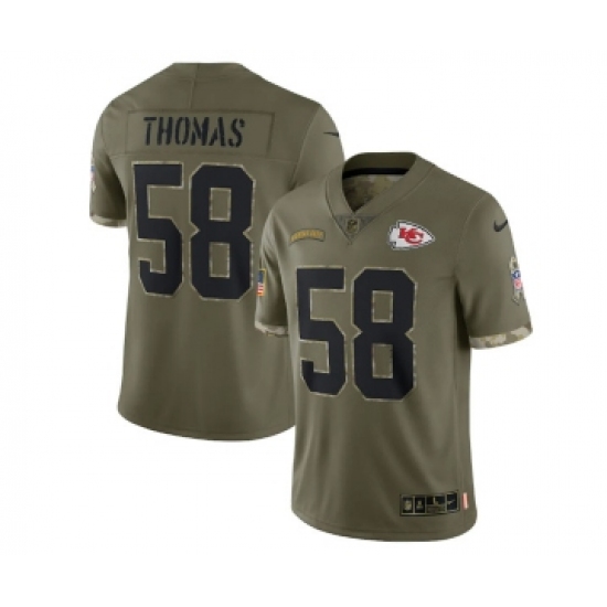 Men's Kansas City Chiefs #58 Derrick Thomas 2022 Olive Salute To Service Limited Stitched Jersey