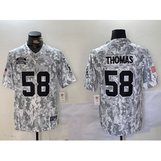 >Men's Kansas City Chiefs #58 Derrick Thomas Arctic Camo 2024 FUSE Salute to Service Limited Stitched Jersey