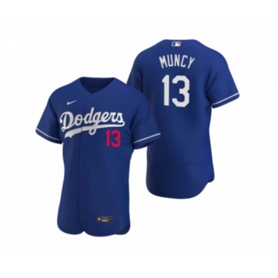>Men's Los Angeles Dodgers #13 Max Muncy Nike Royal Authentic 2020 Alternate Jersey