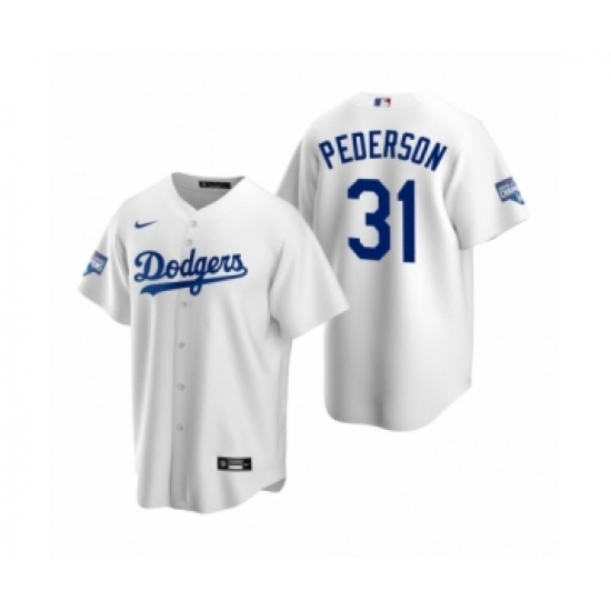 >Men's Los Angeles Dodgers #31 Joc Pederson White 2020 World Series Champions Replica Jersey