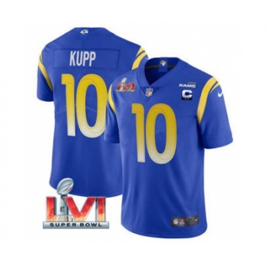 Men's Los Angeles Rams #10 Cooper Kupp 2022 Royal With C Patch Super Bowl LVI Vapor Limited Jersey