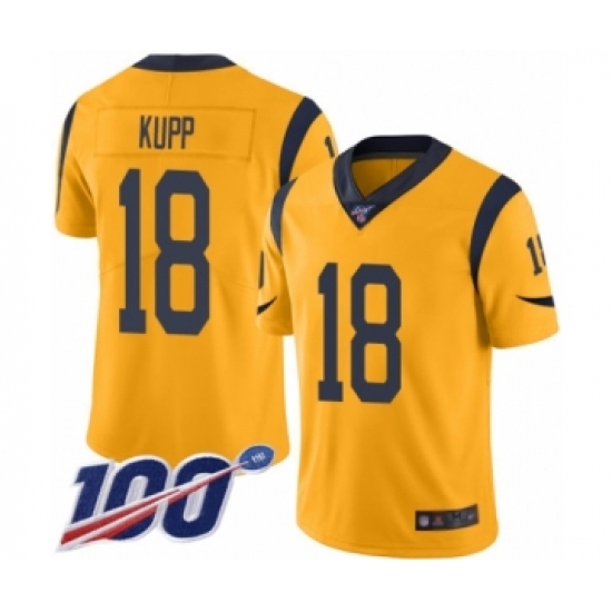 >Men's Los Angeles Rams #18 Cooper Kupp Limited Gold Rush Vapor Untouchable 100th Season Football Jersey