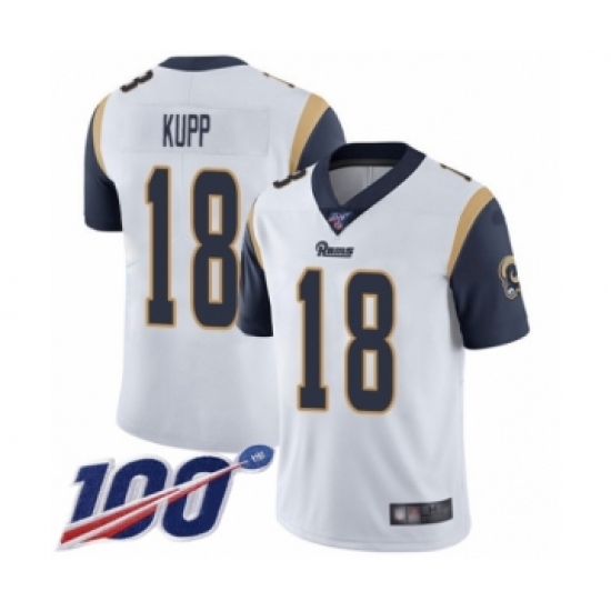 >Men's Los Angeles Rams #18 Cooper Kupp White Vapor Untouchable Limited Player 100th Season Football Jersey