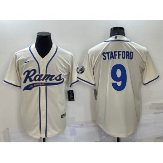 Men's Los Angeles Rams #9 Matthew Stafford Cream Stitched Cool Base Nike Baseball Jersey