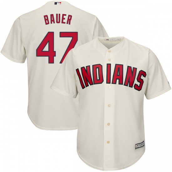 Home>MLB>Cleveland Indians>Trevor Bauer>Men's Majestic Cleveland Indians #47 Trevor Bauer Replica Cream Alternate 2 Cool Base MLB Jersey