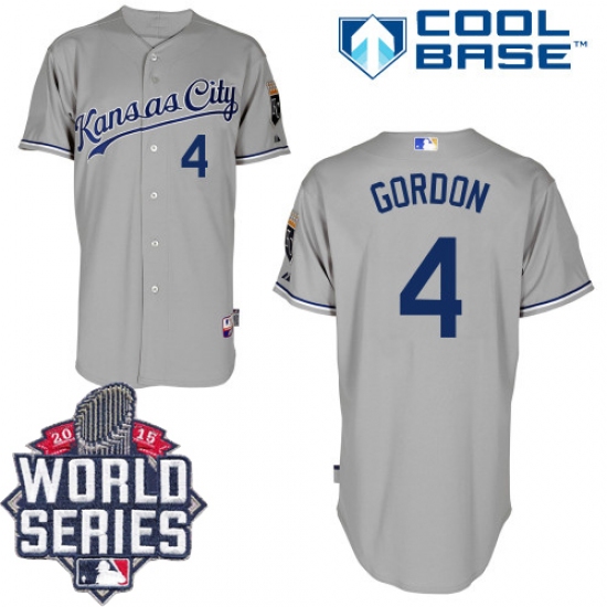 Home>MLB>Kansas City Royals>Alex Gordon>Men's Majestic Kansas City Royals #4 Alex Gordon Replica Grey Road Cool Base 2015 World Series