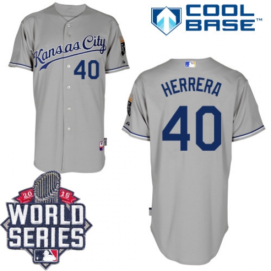 Men's Majestic Kansas City Royals #40 Kelvin Herrera Authentic Grey Road Cool Base 2015 World Series Patch MLB Jersey