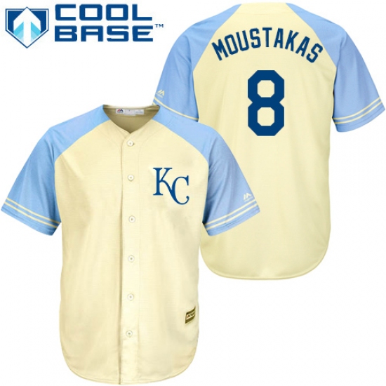 Home>MLB>Kansas City Royals>Mike Moustakas>Men's Majestic Kansas City Royals #8 Mike Moustakas Replica Cream Exclusive Vintage Cool Base MLB Jersey