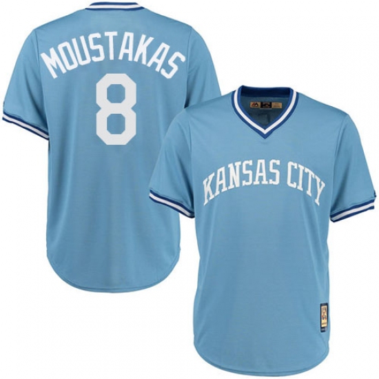 Home>MLB>Kansas City Royals>Mike Moustakas>Men's Majestic Kansas City Royals #8 Mike Moustakas Replica Light Blue Cooperstown MLB Jersey