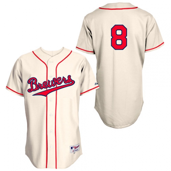 Men's Majestic Milwaukee Brewers #8 Ryan Braun Authentic Cream 1948 Turn Back The Clock MLB Jersey