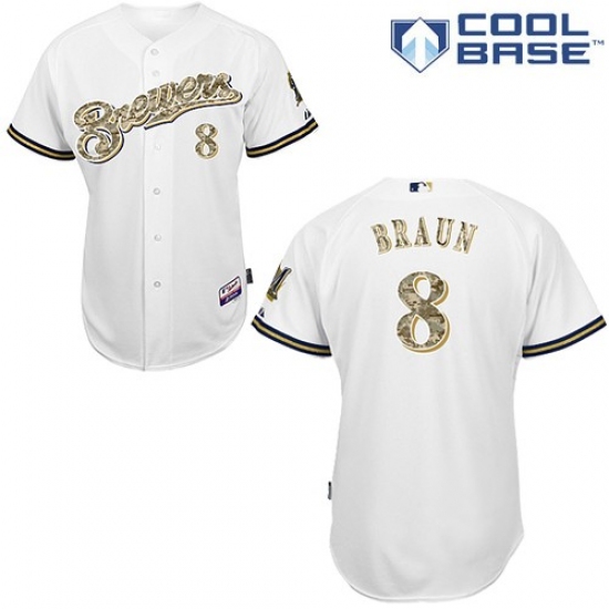 Men's Majestic Milwaukee Brewers #8 Ryan Braun Replica White USMC Cool Base MLB Jersey