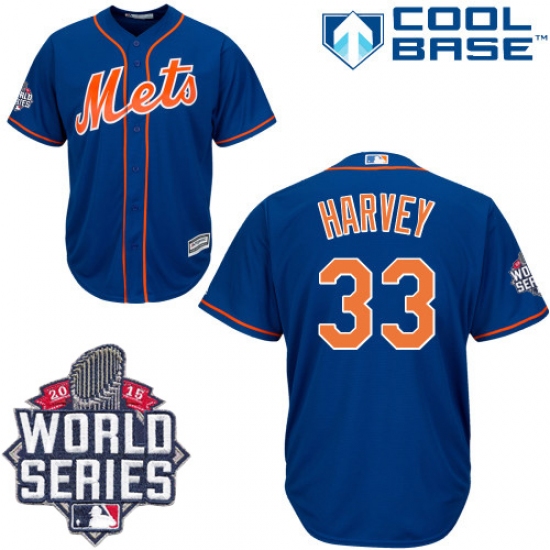 Men's Majestic New York Mets #33 Matt Harvey Authentic Royal Blue Alternate Home Cool Base 2015 World Series MLB Jersey