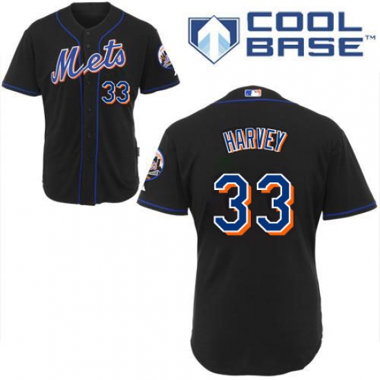 Home>MLB>New York Mets>Matt Harvey>Men's Majestic New York Mets #33 Matt Harvey Replica Black Cool Base MLB Jersey