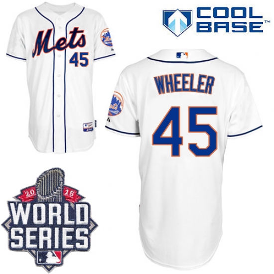 Men's Majestic New York Mets #45 Zack Wheeler Authentic White Alternate Cool Base 2015 World Series MLB Jersey