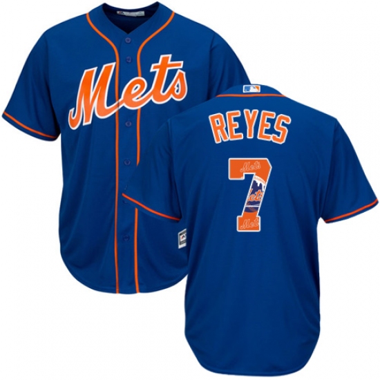 Men's Majestic New York Mets #7 Jose Reyes Authentic Royal Blue Team Logo Fashion Cool Base MLB Jersey
