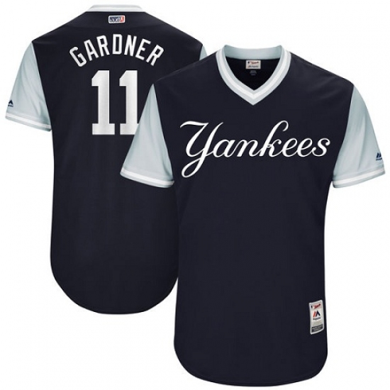 Home>MLB>New York Yankees>Brett Gardner>Men's Majestic New York Yankees #11 Brett Gardner "Gardner" Authentic Navy Blue 2017 Players Weekend MLB Jersey