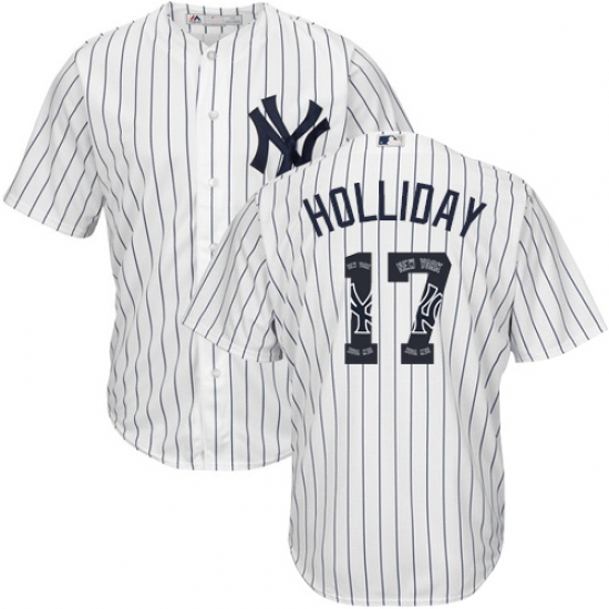 Men's Majestic New York Yankees #17 Matt Holliday Authentic White Team Logo Fashion MLB Jersey