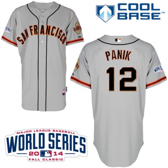 Home>MLB>San Francisco Giants>Joe Panik>Men's Majestic San Francisco Giants #12 Joe Panik Authentic Grey Road Cool Base w/2014 World Series Patch MLB Jersey