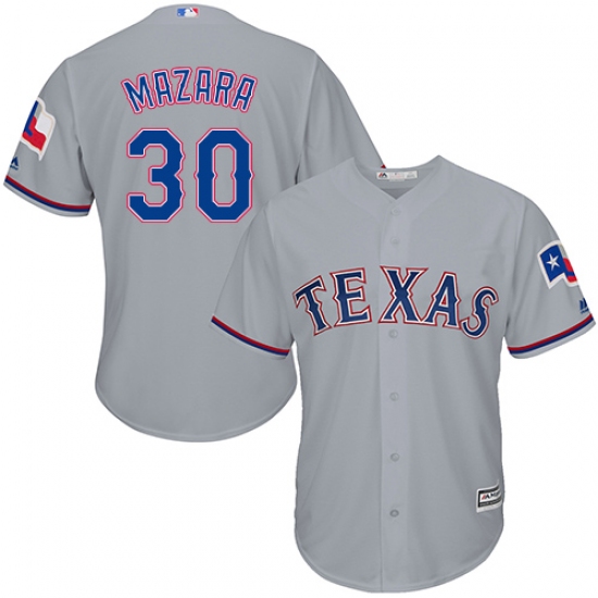 Men's Majestic Texas Rangers #30 Nomar Mazara Replica Grey Road Cool Base MLB Jersey