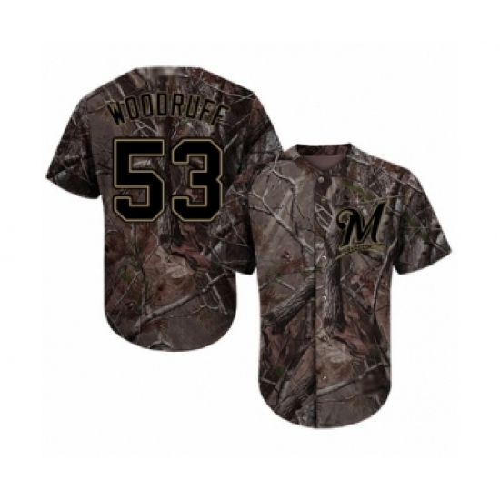 Men's Milwaukee Brewers #53 Brandon Woodruff Authentic Camo Realtree Collection Flex Base Baseball Jersey