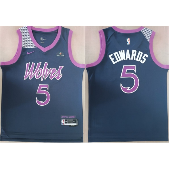 Men's Minnesota Timberwolves #5 Anthony Edwards Blue 2023-24 City Edition Stitched Jersey