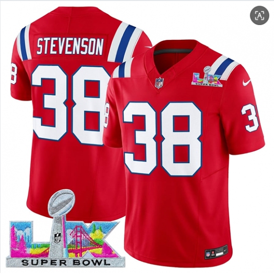 Men's New England Patriots #38 Rhamondre Stevenson Red 2025 F.U.S.E. Super Bowl LX Vapor Limited Football Stitched Jersey