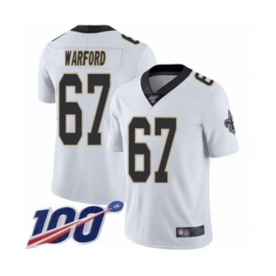 Men's New Orleans Saints #67 Larry Warford White Vapor Untouchable Limited Player 100th Season Football Jersey