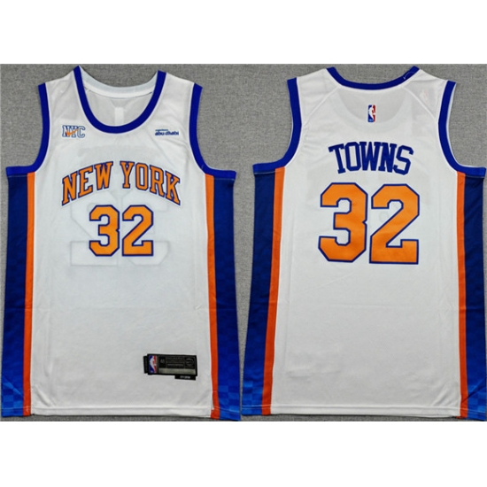 >Men's New Yok Knicks #32 Karl-Anthony Towns White 2024-25 City Edition Stitched Basketball Jersey