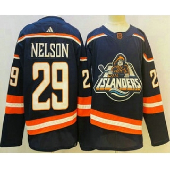 >Men's New York Islanders #29 Brock Nelson Blue 2022 Reverse Retro Stitched Jersey