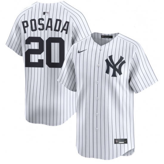 Men's New York Yankees #20 Jorge Posada White Cool Base Stitched Baseball Jersey
