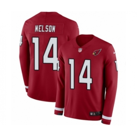 >Men's Nike Arizona Cardinals #14 J.J. Nelson Limited Red Therma Long Sleeve NFL Jersey