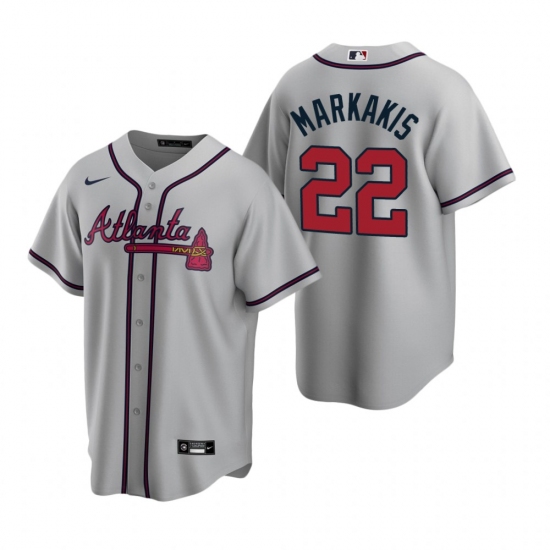 >Men's Nike Atlanta Braves #22 Nick Markakis Gray Road Stitched Baseball Jersey